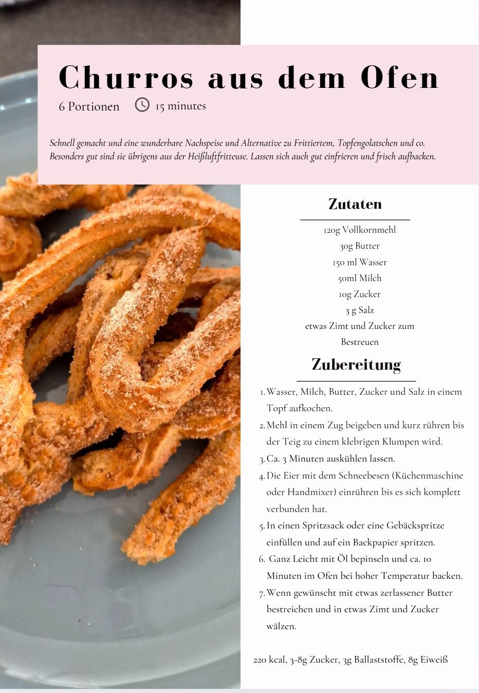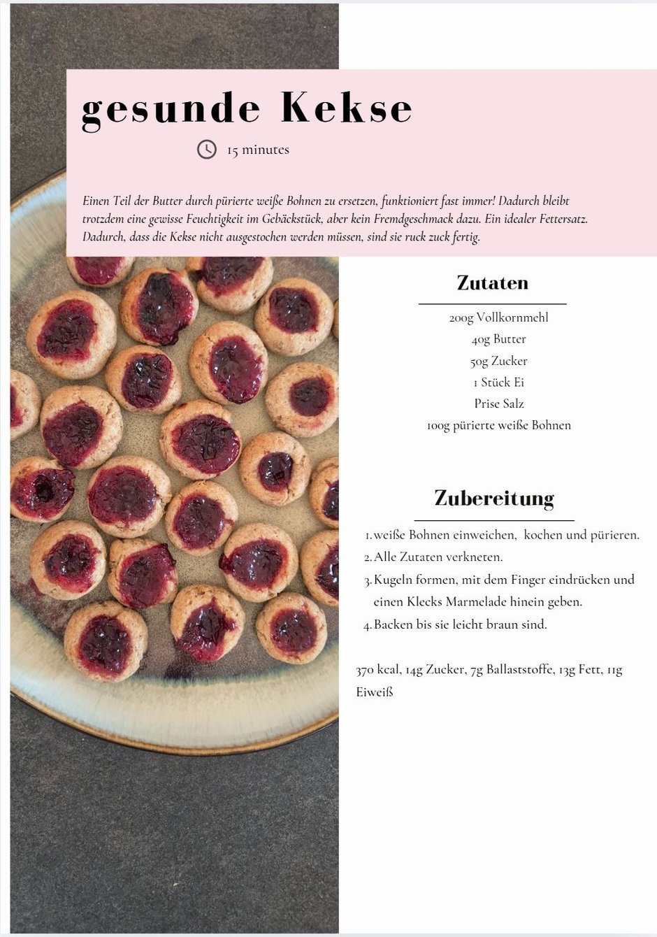 300 kcal / 12g Zucker / 13g Fett / 12g Eiweiß / 3,2g Ballaststoffe